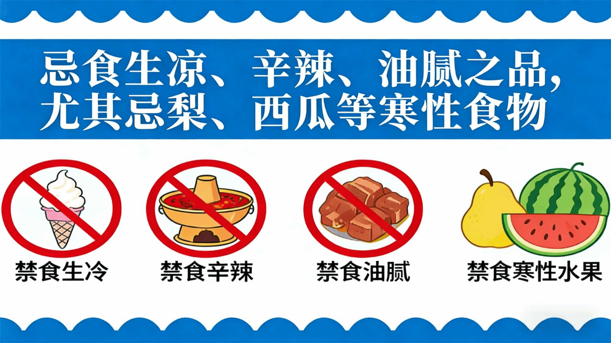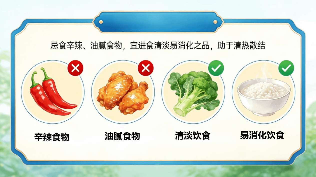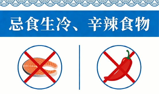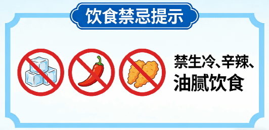 禁忌:禁生冷、辛辣、油腻饮食。